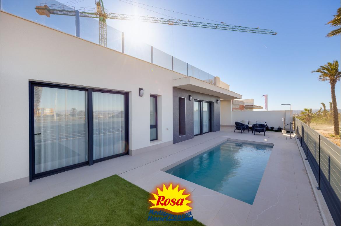 Du går ned og dykker ned i din private pool, det krystalklare vand spejler den klare himmel på Costa Blanca. Her, i din villa i Aguas Nuevas, Torrevieja, er hver dag en oplevelse af luksus og velvære.