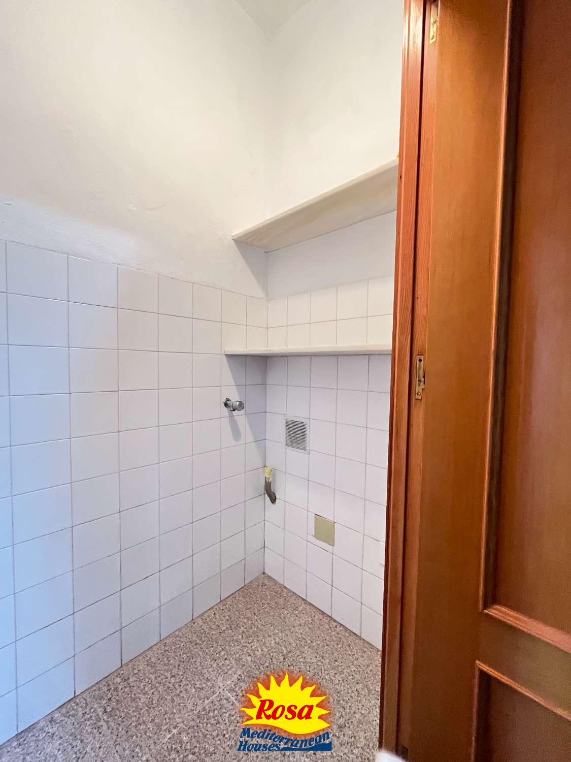 Erdgeschoss: Helles und geräumiges Wohnzimmer, 1 Schlafzimmer, Badezimmer mit Dusche (neu) sowie eine große, separate und unmöblierte Küche mit Speisekammer, Innenhof und Hauswirtschaftsbereich.