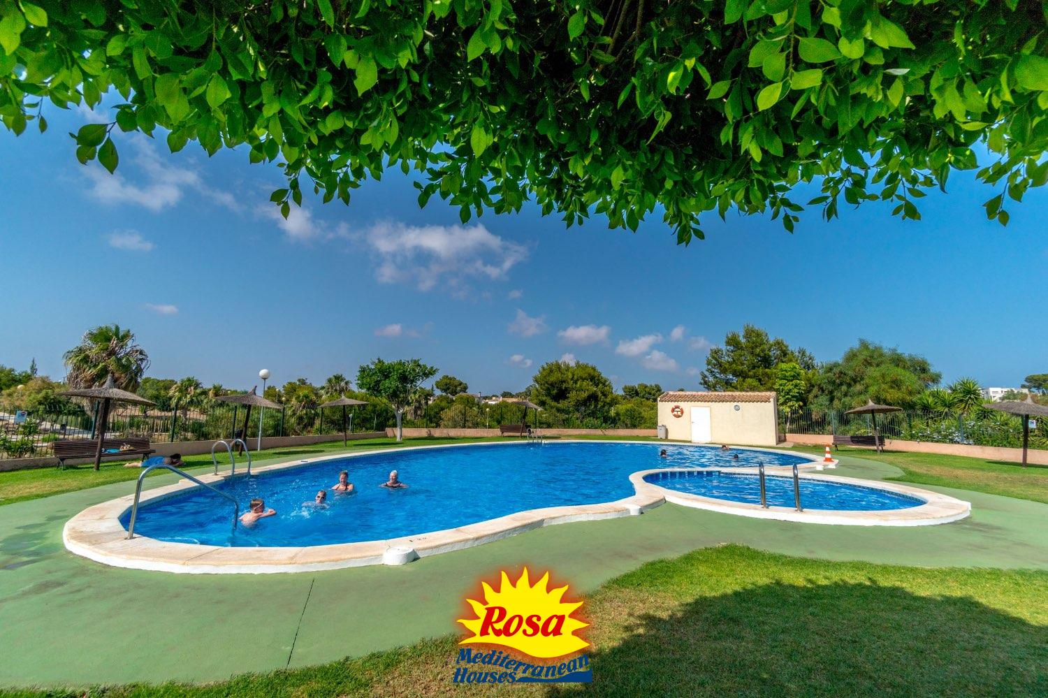 La comunidad es muy económica y cuenta cos 2 piscinas , zona de niños y pista de pádel