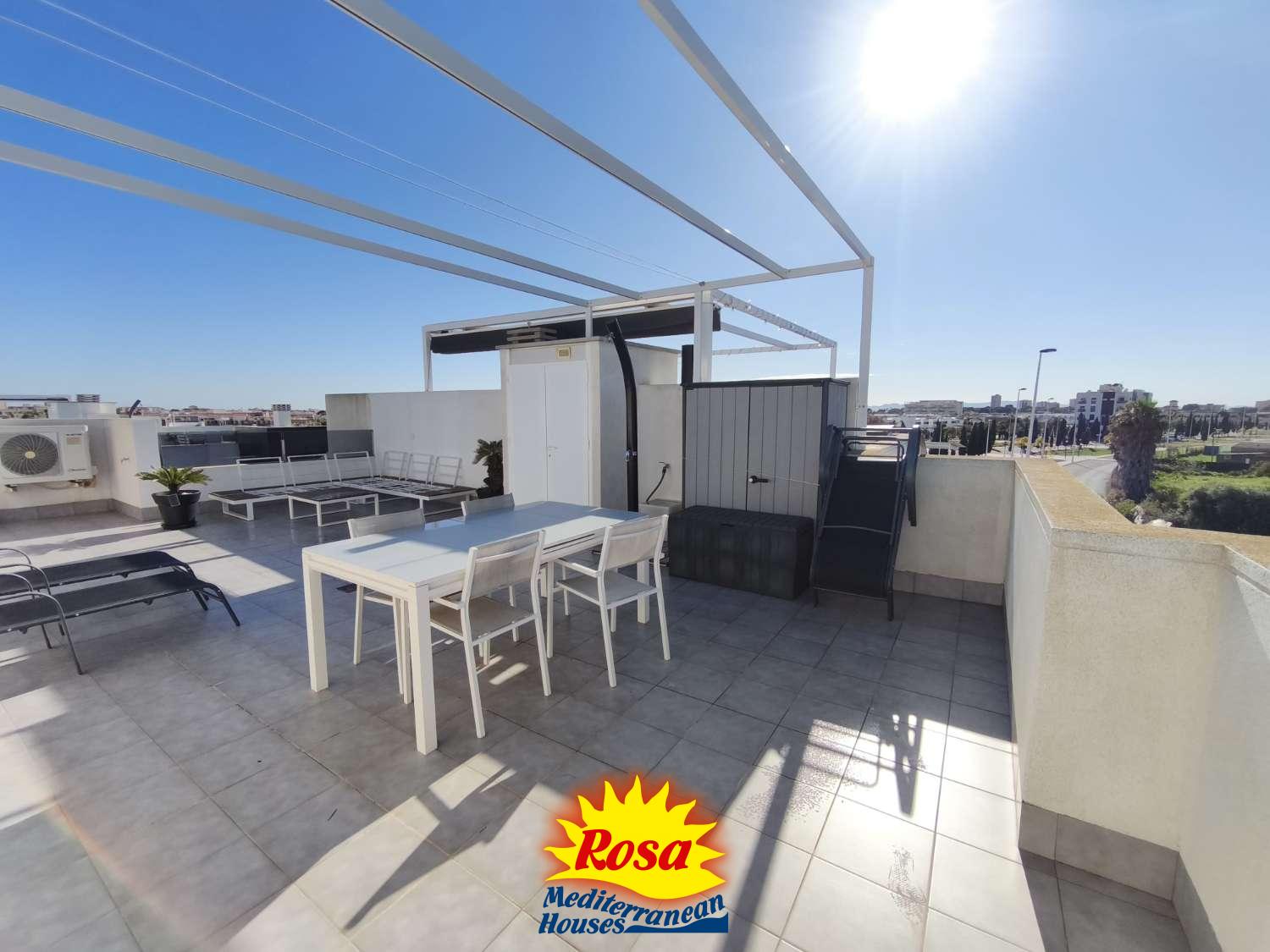 Un acceso desde la terraza conduce al solárium que ocupa toda la zona del apartamento, con unas vistas increíbles de Lo Pagan.