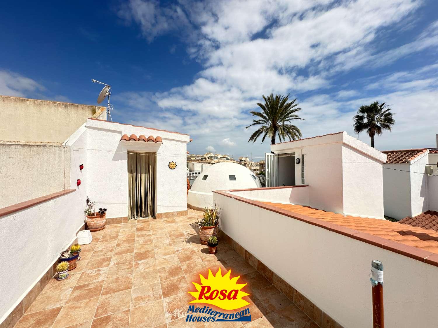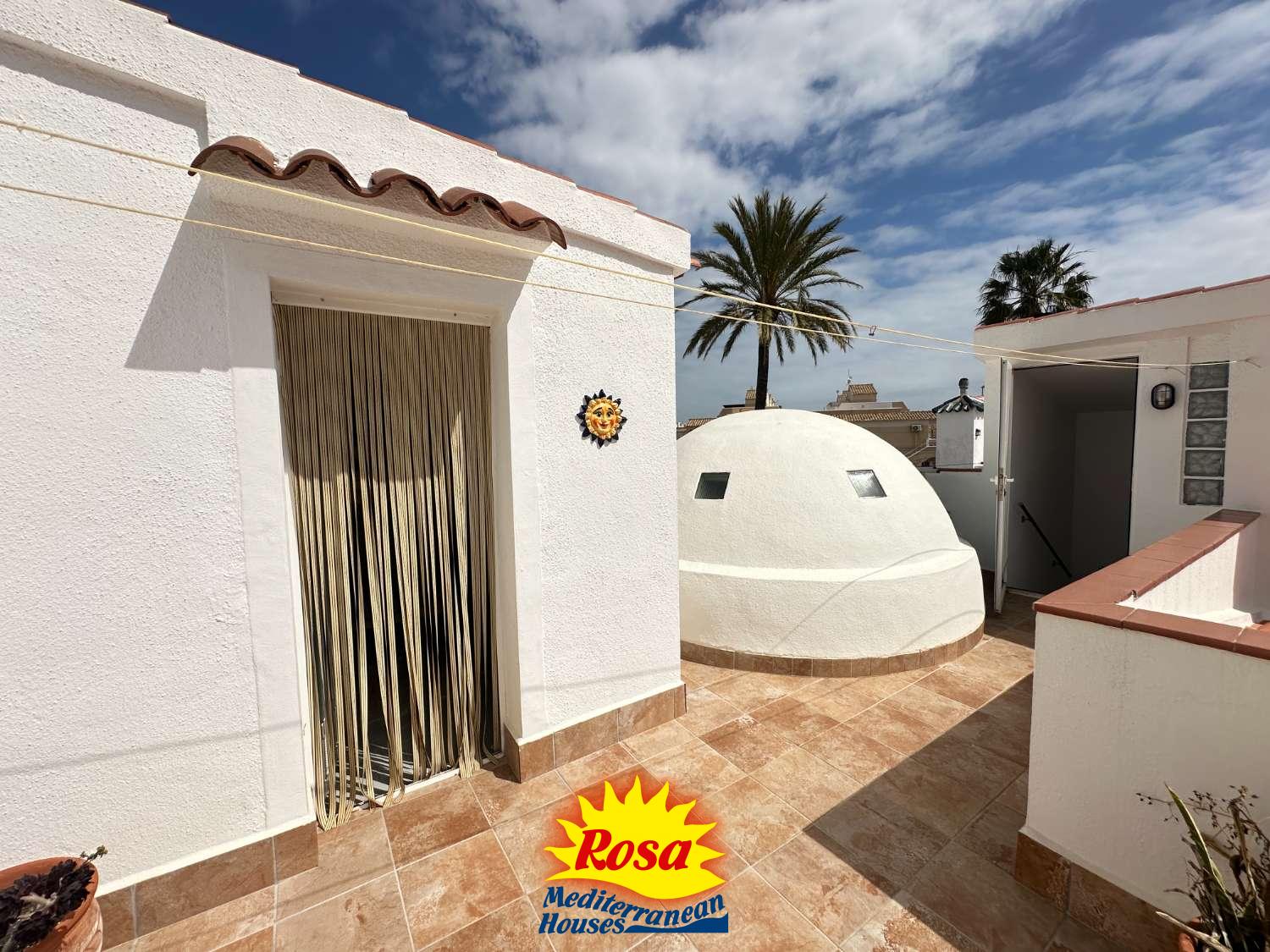 Desde la terraza, encontramos unas escaleras que conducen a una terraza en la azotea con otra habitación y una amplia zona para disfrutar del sol.