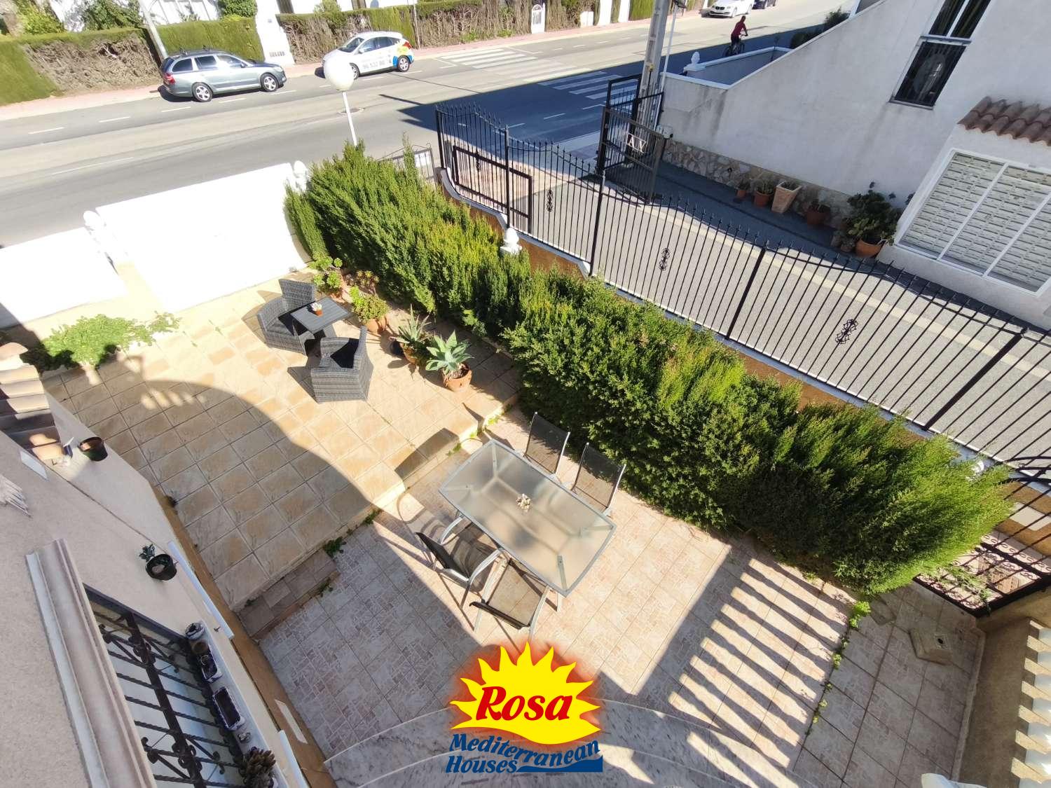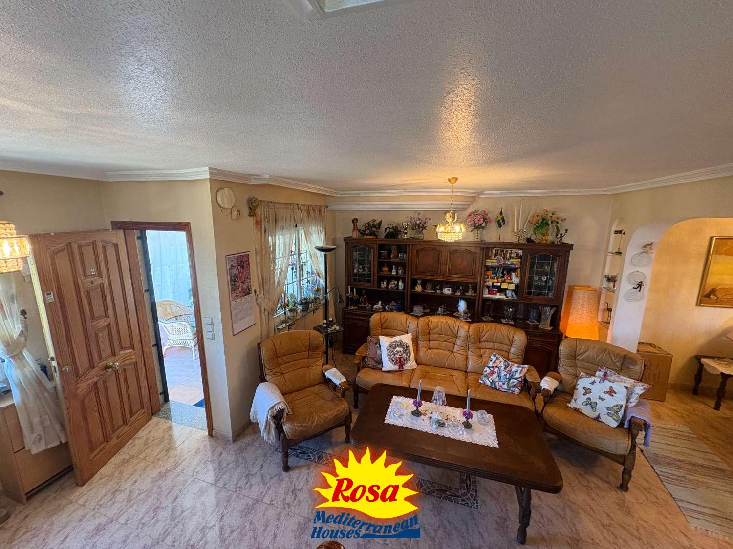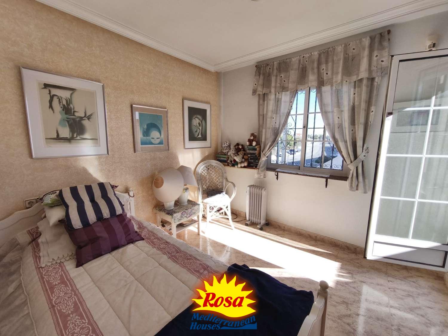 Parcela en esquina con casa adosada de 2 dormitorios y 2 baños en Playa Flamenca.