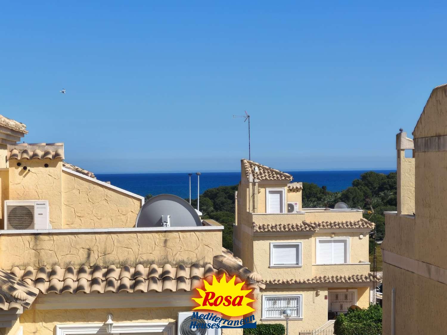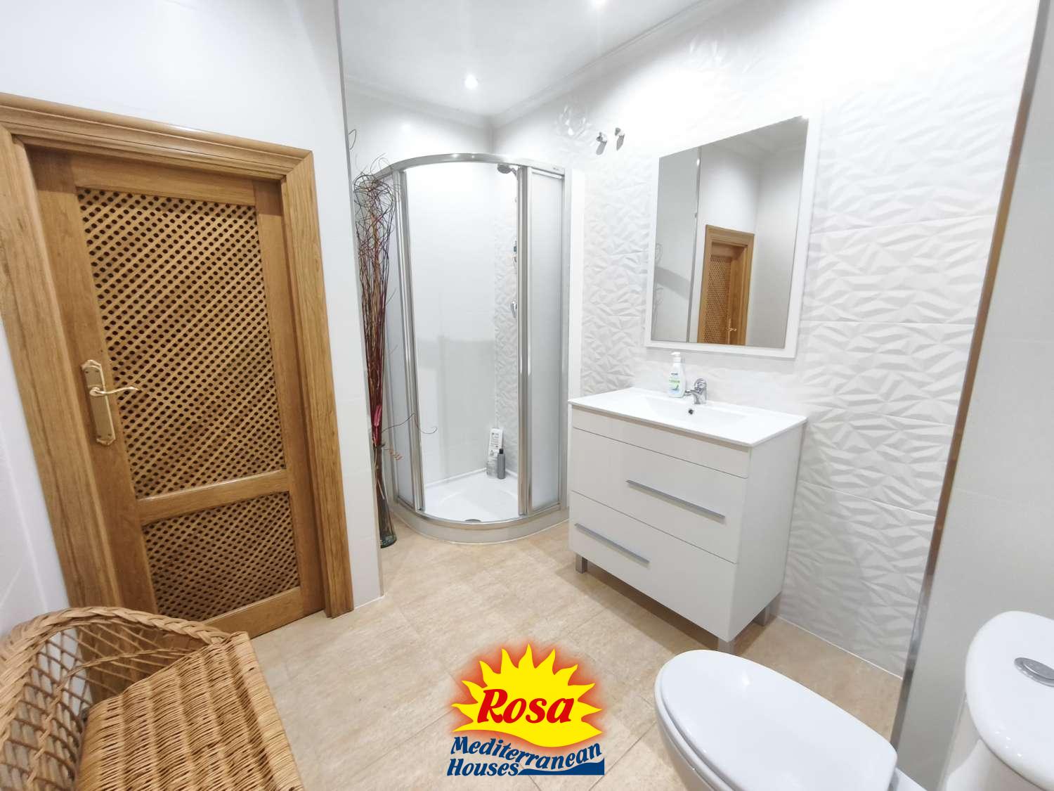 Si subimos encontraremos dos dormitorios, uno con cama matrimonial y otro con una individual, desde los cuales ambos tienen acceso a un balcón compartido. Subiendo las escaleras una última vez, tenemos una terraza en la azotea preciosa, perfecta para tomar el sol con vistas al mar.